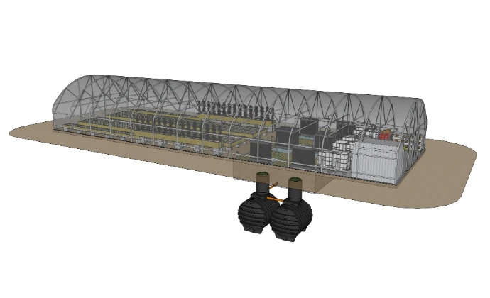 The whole system is located inside a greenhouse with nominal width of 10 m. The heating is not part of the construction plan.