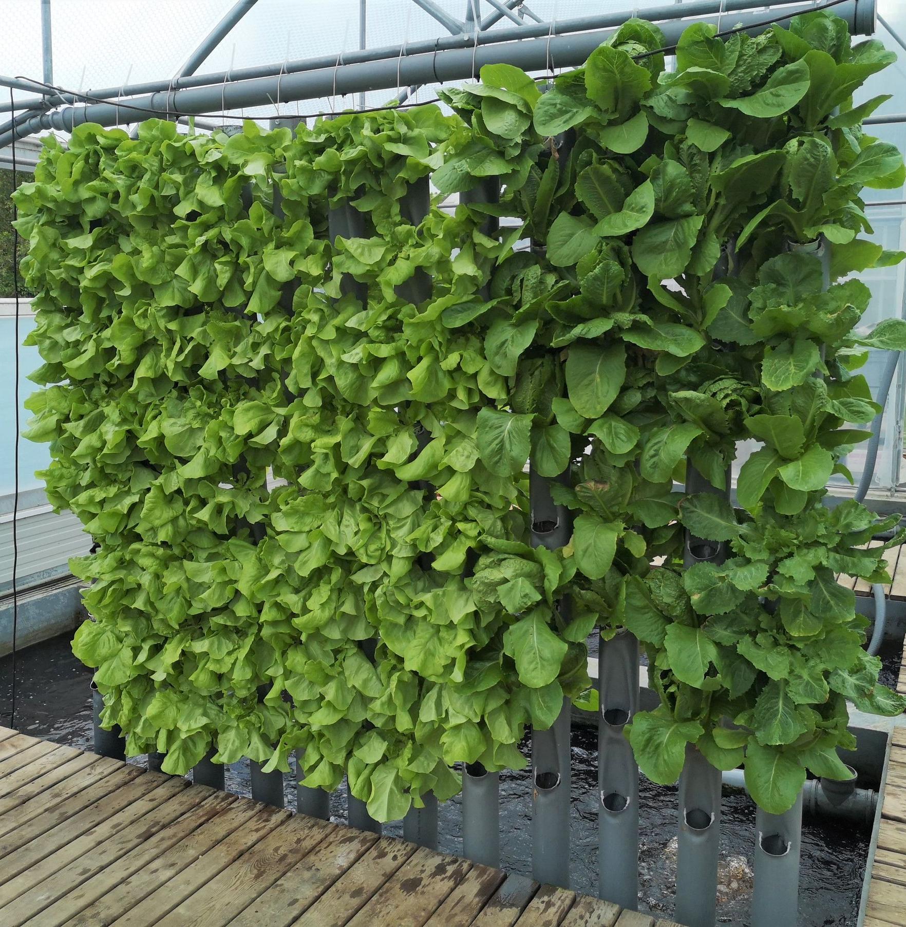 The fish are kept in an insulated hall under optimal conditions, and the vegetables grow in a small adjoining greenhouse.